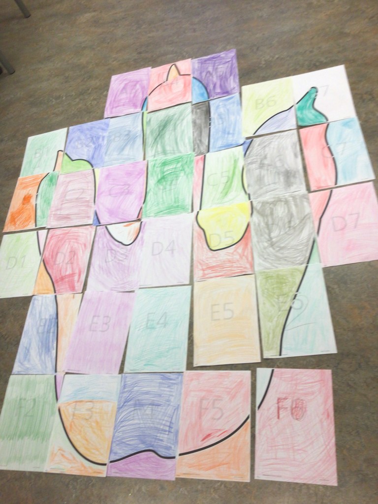 • Fotavtrykk av Tyrannosaurus Rex: For å få et innblikk i hvor store dinosaurusene egentlig var, lagde elevene i fellesksap fotavtrykket til Tyrannosaurus Rex. Dette fant jeg hos spireserien.