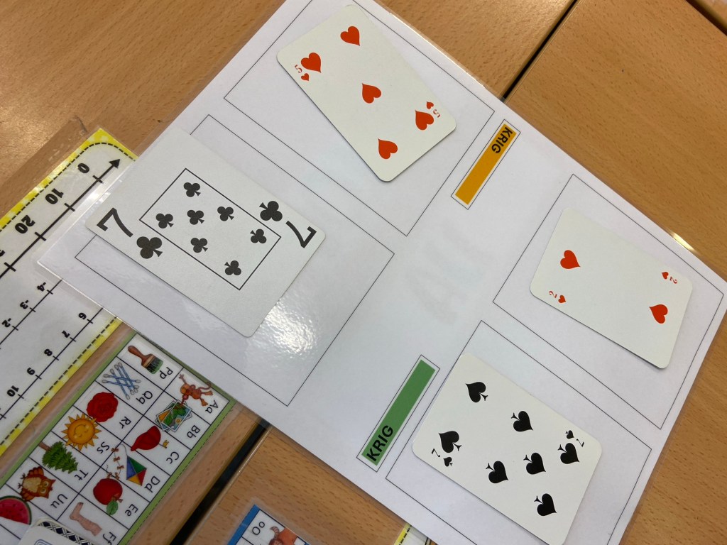Spille krig september 17, 2024brittstips Vi øver på addisjon og i dag startet vi timen med å spille krig. Elevene jobbet med læringspartner og trakk to kort hver. Den som fikk den høyeste summen, vant runden. Del dette: Klikk for å dele på X(åpnes i en ny fane) X Klikk for å dele på Facebook(åpnes i en ny fane) Facebook Lik Laster inn...