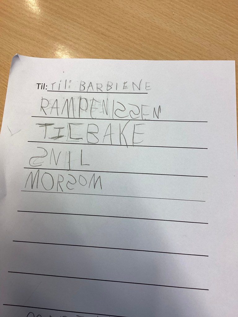 I dag skrev elevene brev til barbiene i håp om at de vil slippe løs rampenissene.