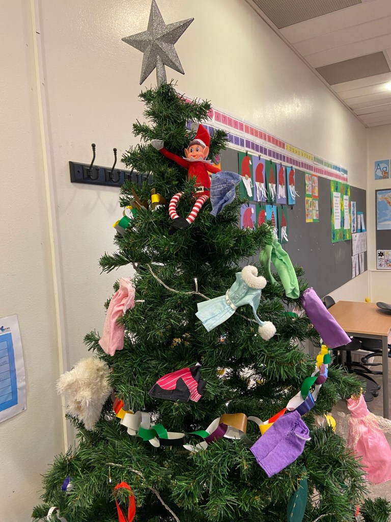 I dag har elevene pyntet juletrærne og stjernene de lagde forrige uke.