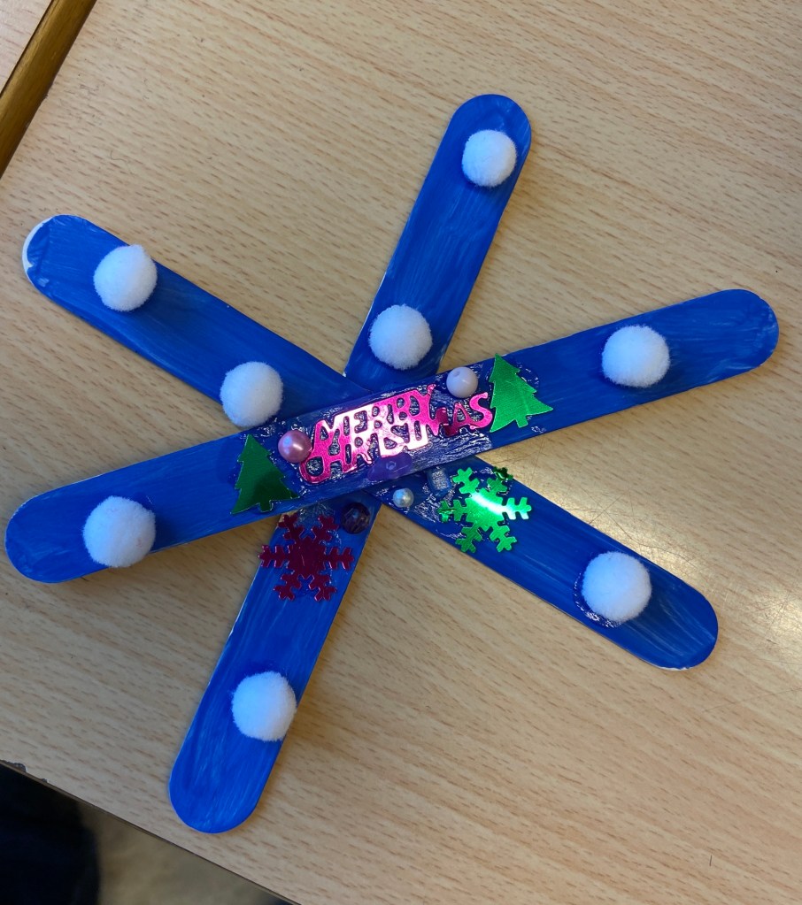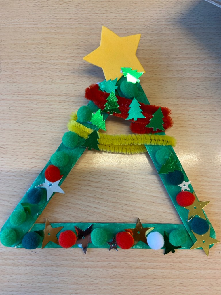 I dag har elevene pyntet juletrærne og stjernene de lagde forrige uke.