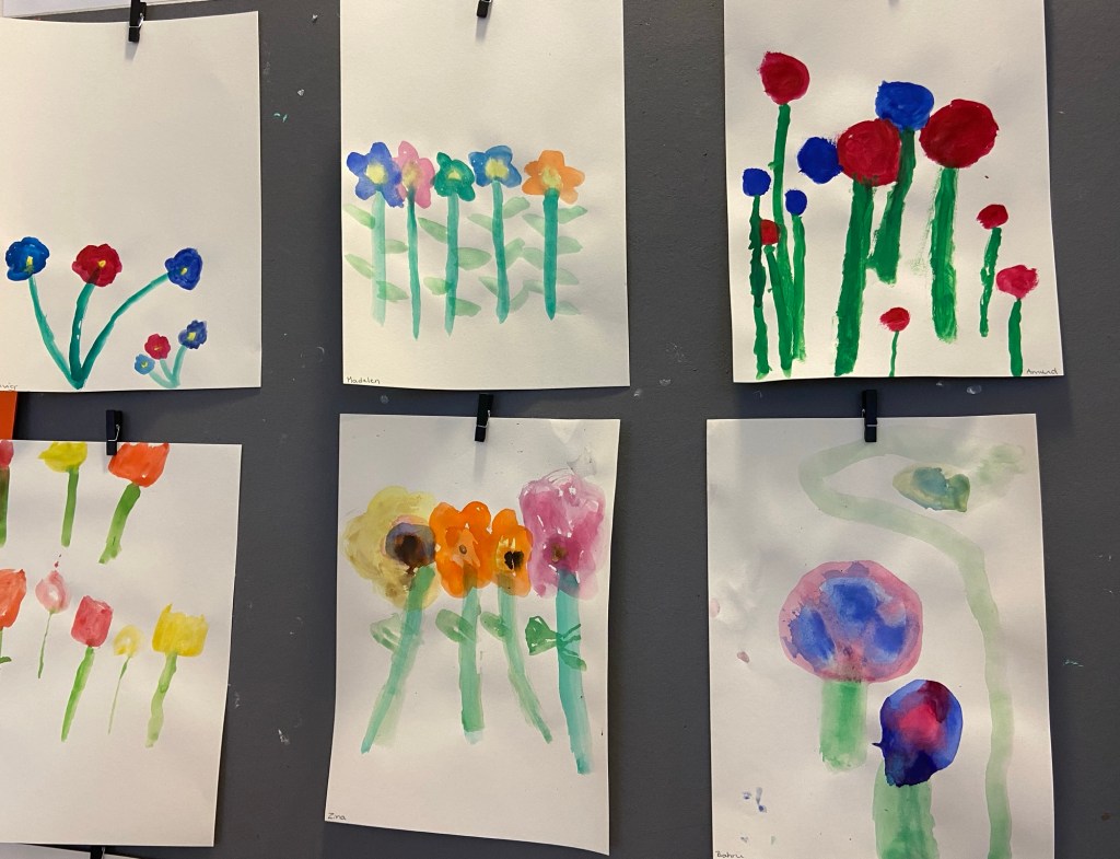 I dag har vi malt sommerblomster med vannfarger. Gøy med kreative elever.