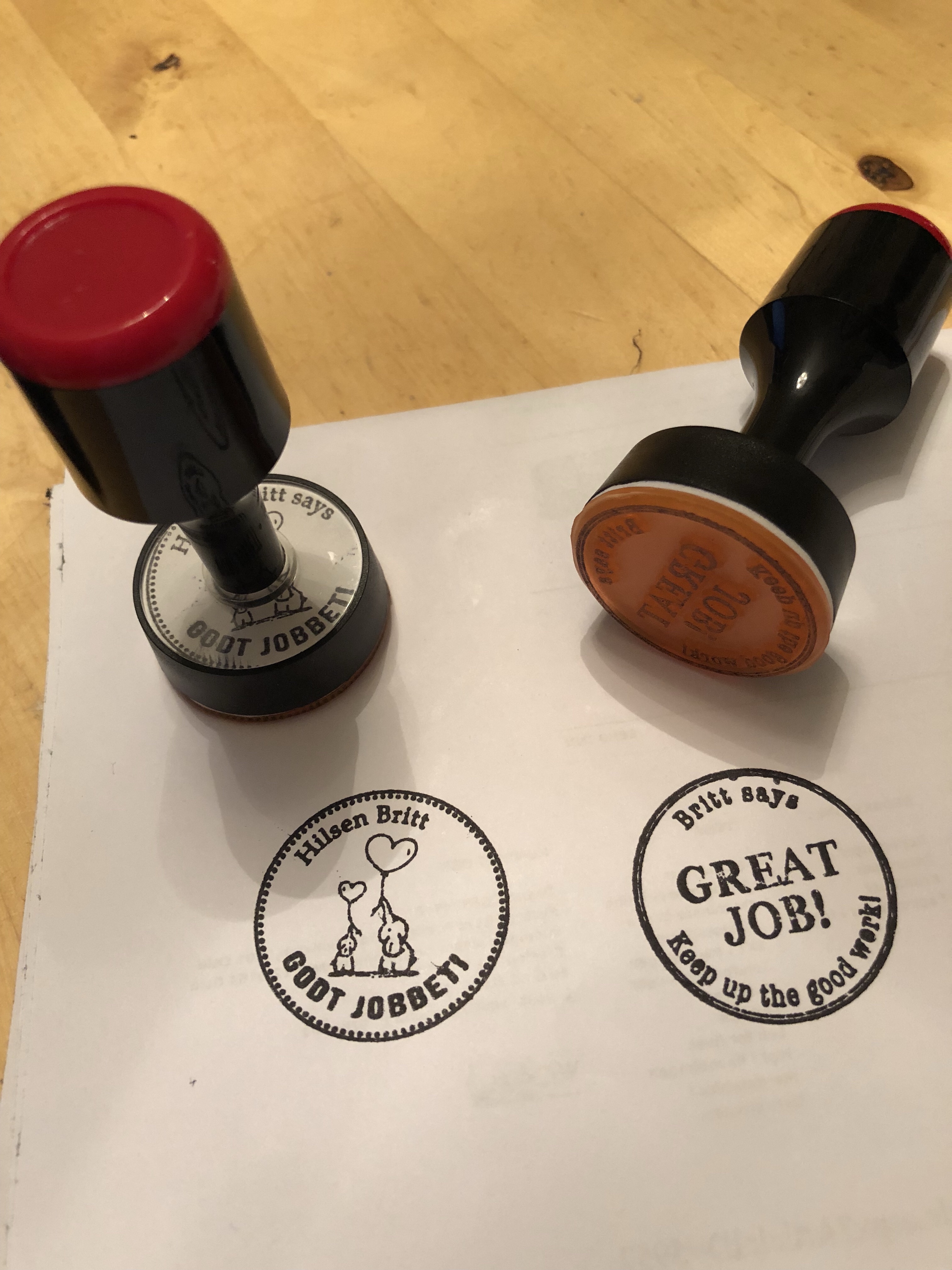 I dag kom endelig pakken jeg har ventet på i ukesvis. Jeg hadde bestilt personlige stempler, og de var akkurat så fine jeg hadde håpet på. Kribler i fingrene etter å bruke de i evalueringen av elevenes arbeid.