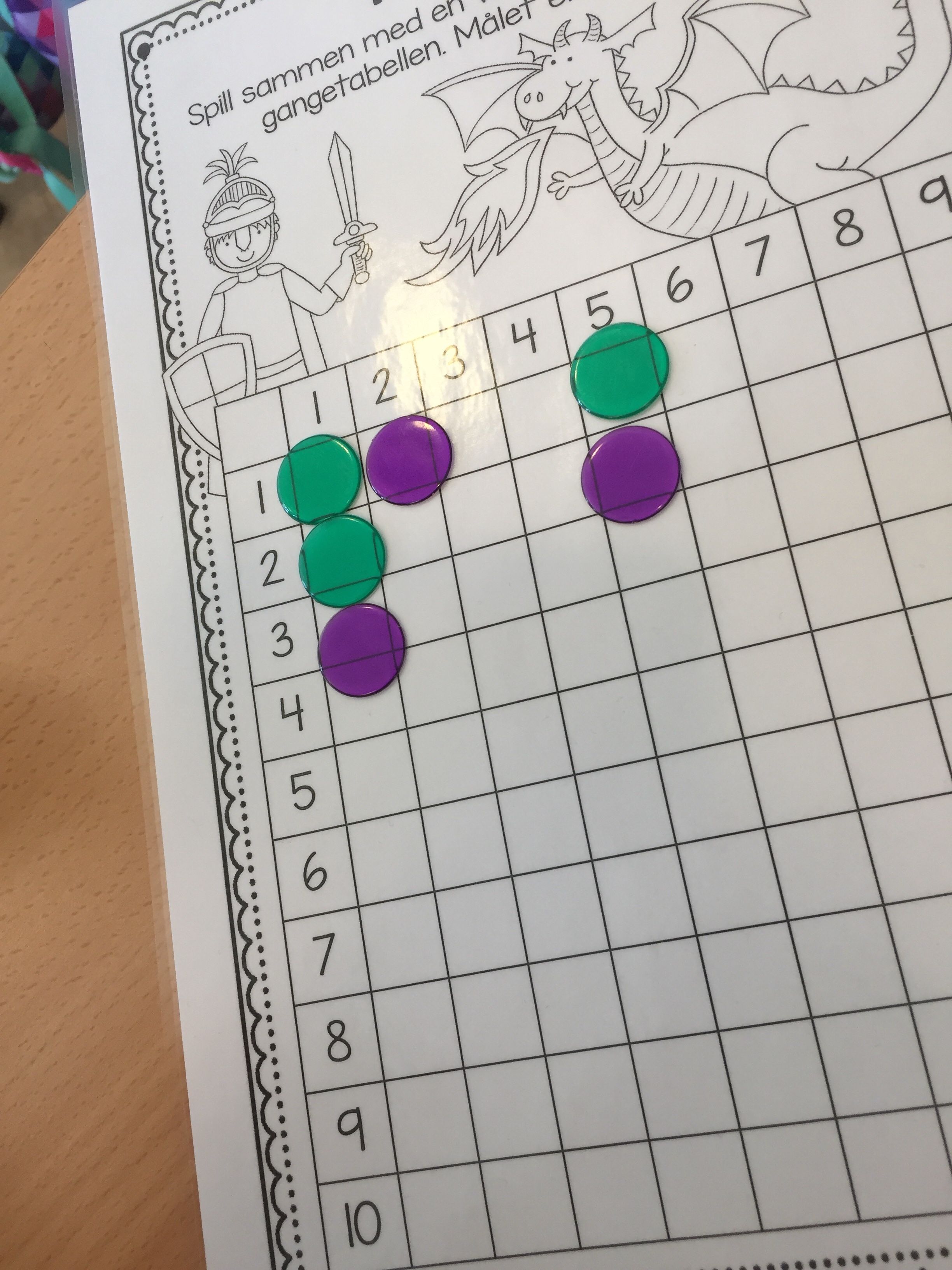 Lag to bunker med lapper med tallene 1 – 10 som ikke er i rekkefølge. Trekk ett tall fra hver bunke når du skal lage multiplikasjonsstykker (Unntatt 8 x 10).