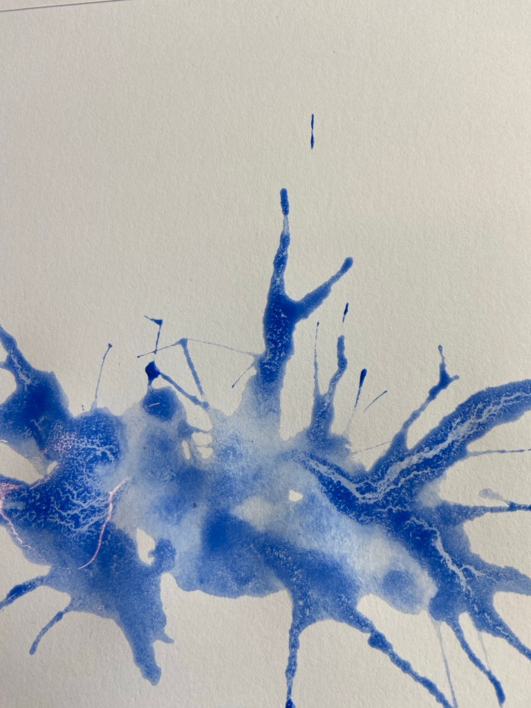 Først blåste de vanndammen med vannmaling og et sugerør.