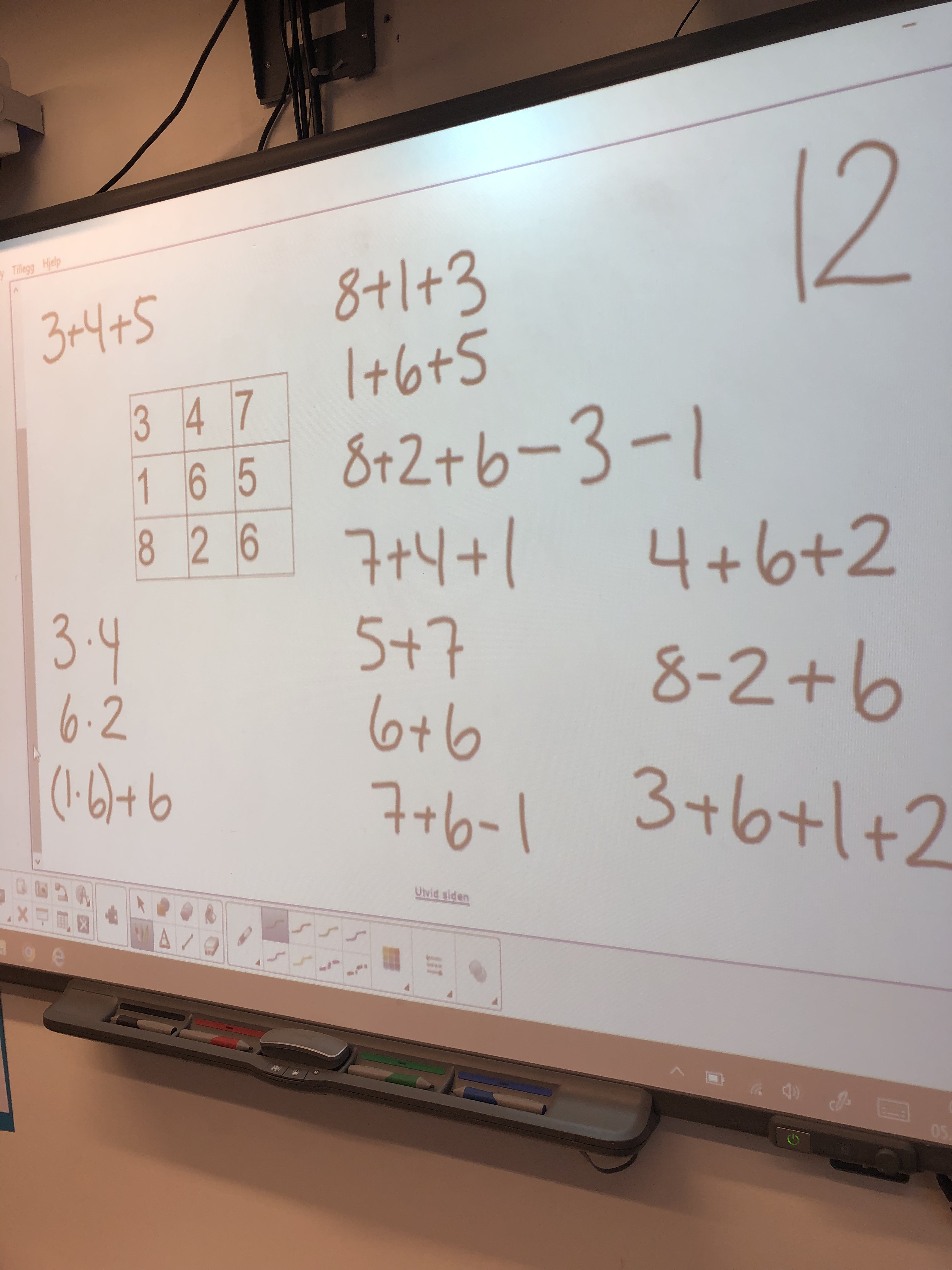 Elevene jobbet sammen med læringspartneren sin og skrev ned løsningen på et ark. Deretter hadde vi felles gjennomgang av de ulike løsningene de hadde funnet og hvordan de hadde tenkt.