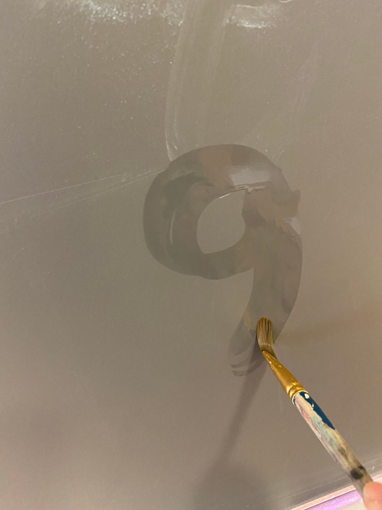 Vi har øvd på formen ved å tegne tallet i lufta, på ryggen til hverandre, med vann og pensel på tavla, formet med plastelina, bygd 9-tallet med pluss-pluss og formet tallet med kroppene.